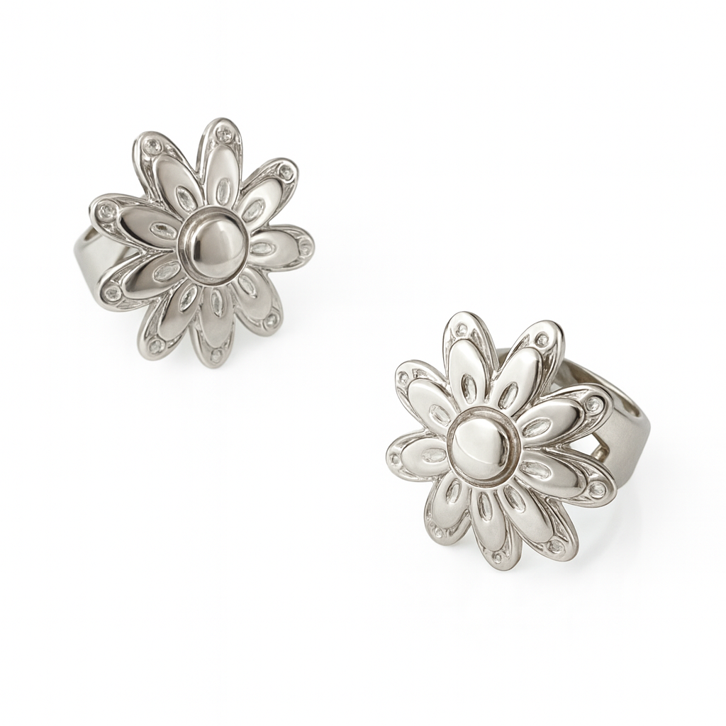 Anillo macizo fundido en aleación de zamak con recubrimiento baño niquelado y pulidos manuales.