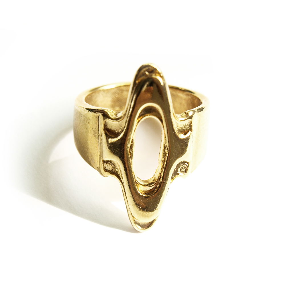 Anillo macizo fundido en aleación de zamak con recubrimiento baño oro 18k/Niquelado y pulidos manuales.