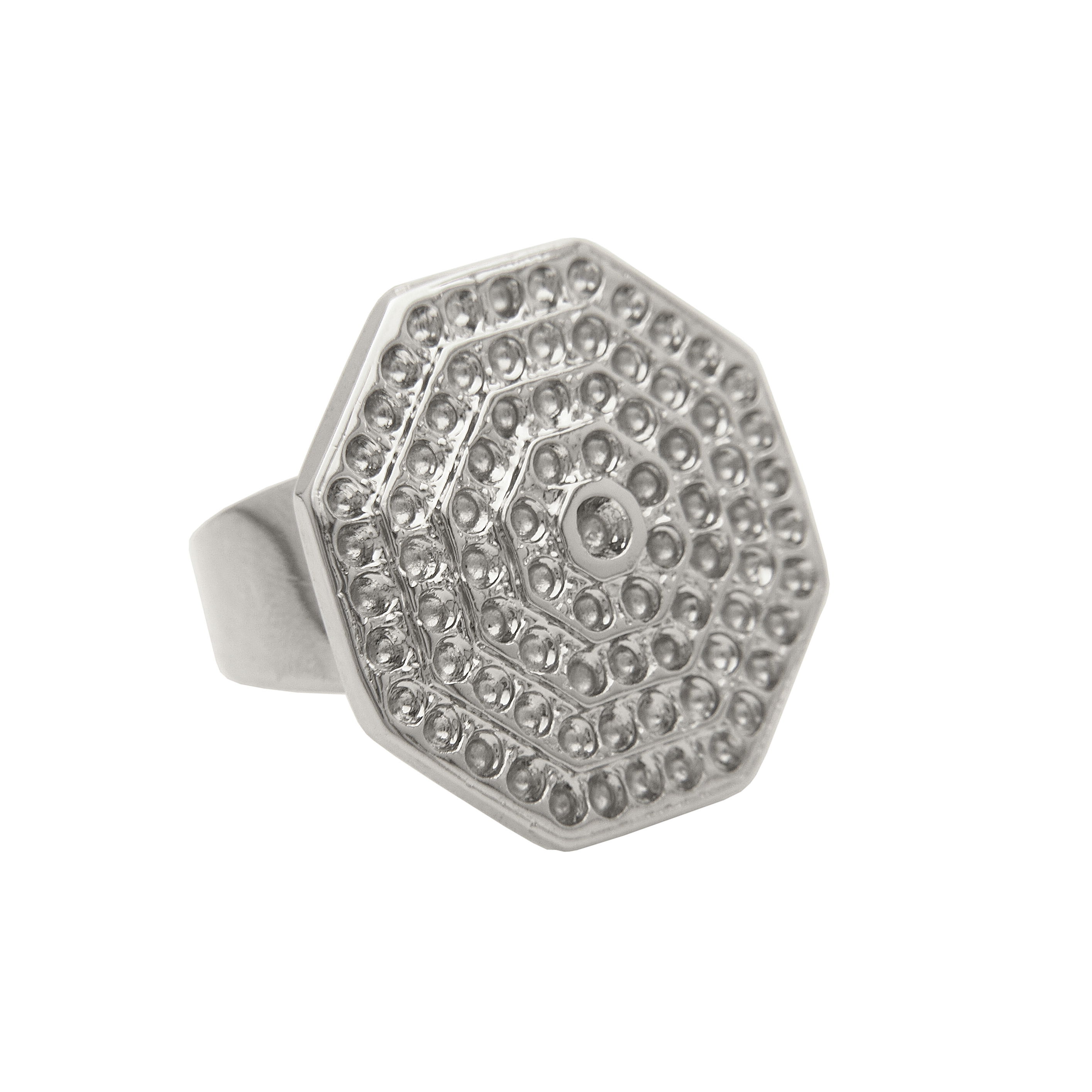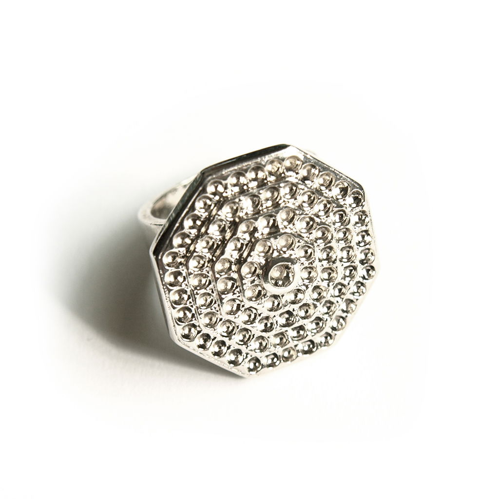 Anillo macizo fundido en aleación de zamak con recubrimiento baño oro 18k/Niquelado y pulidos manuales.