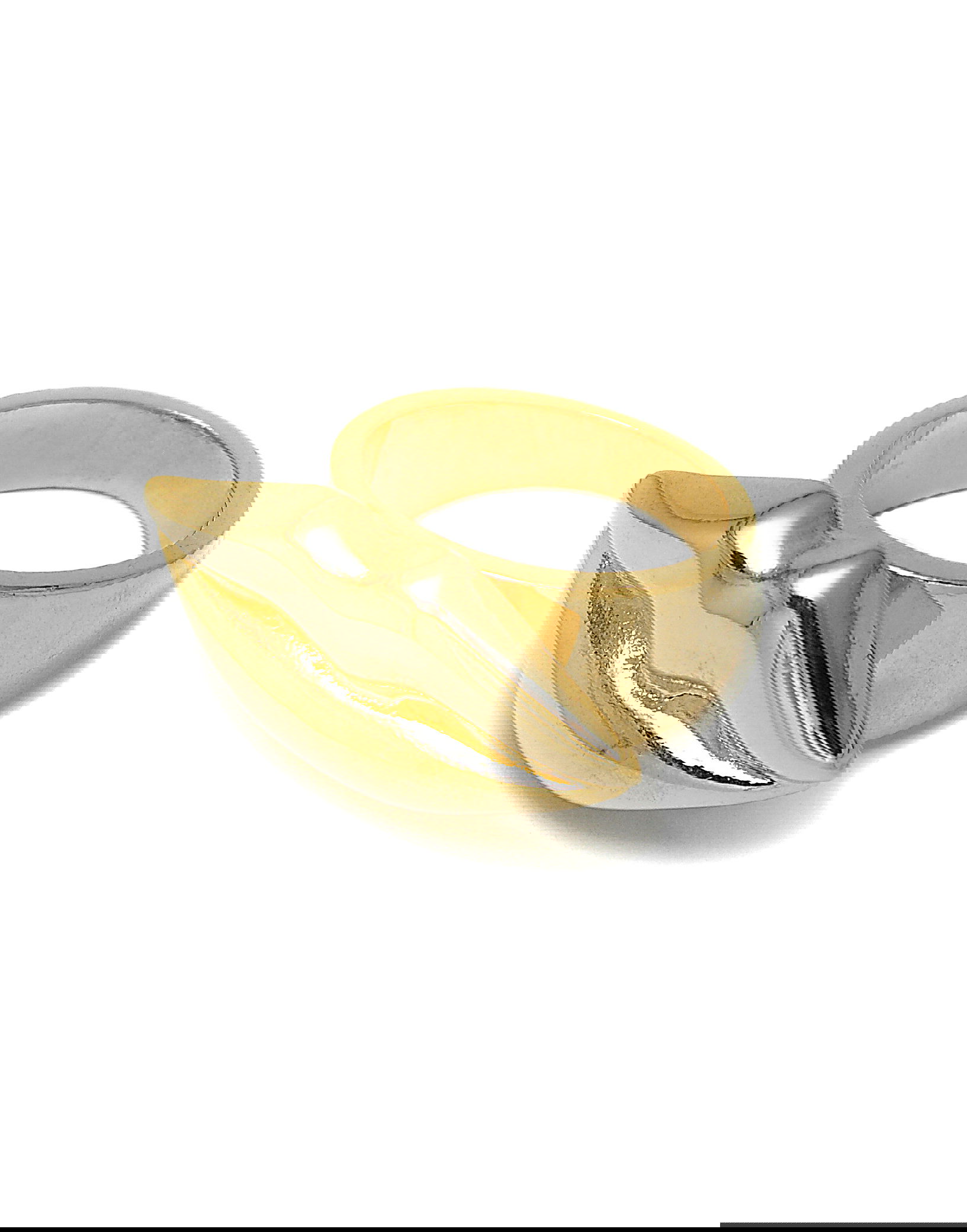 Anillo macizo fundido en aleación de zamak con recubrimiento baño oro 18k y pulidos manuales.