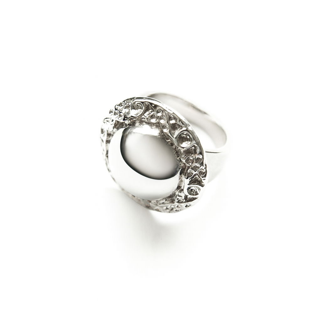 Anillo macizo fundido en aleación de zamak con recubrimiento baño niquelado, esmaltado epoxi y pulidos manuales.
