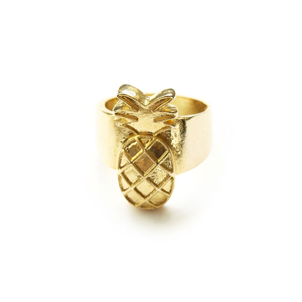 Anillo macizo fundido en aleación de zamak con recubrimiento baño oro 18k y pulidos manuales
